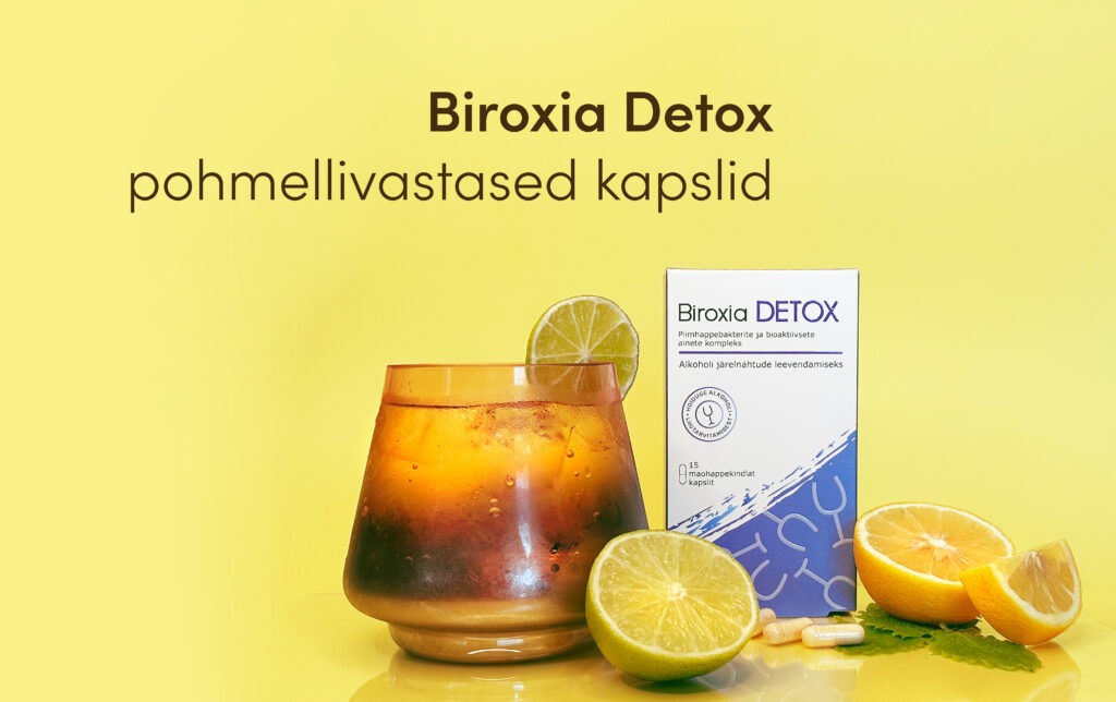 Biroxia Detox on ainulaadne pohmellivastane toode, lähenedes pohmellile terviklikult. Teaduspõhise koostisega Biroxia Detox kapslid on välja töötanud Eesti proviisorid. Toote eesmärk on kiirendada atseetaldehüüdi lagundamist soolestikus ja maksas ning taastada normaalne mikrofloora ja seedime. Selline kombinatsioon parandab organismi võimet vabaneda kiiremini mürkainetest, tagab parema enesetunde peojärgsel hommikul ja loob aluse produktiivsele päevale.