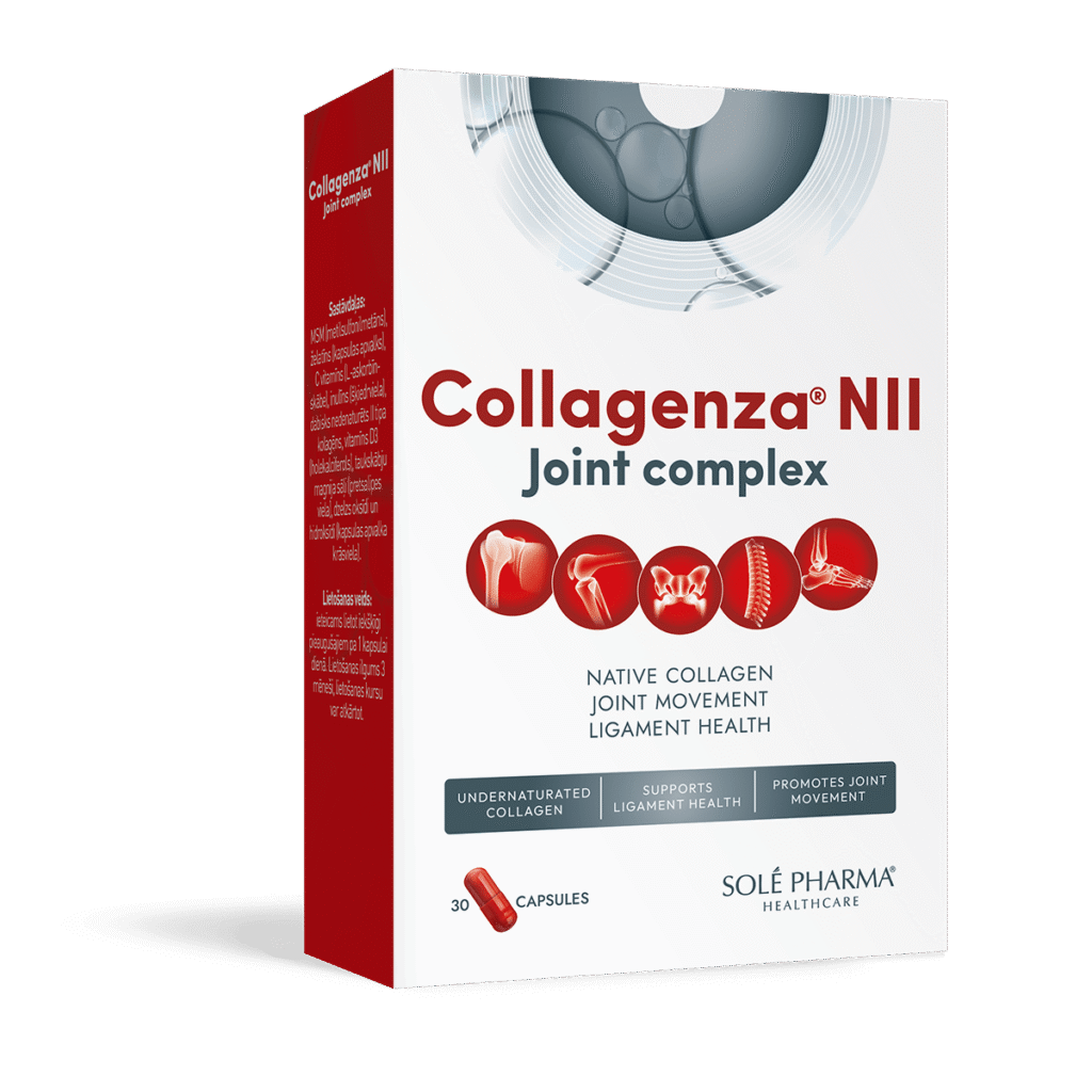 Collagenza® NII Joint complex on ainulaadne liigesepreparaat, mis sisaldab uue põlvkonna denatureerimata II tüüpi kollageeni, MSM-i (metüülsulfonüülmetaan) ning vitamiine C ja D.