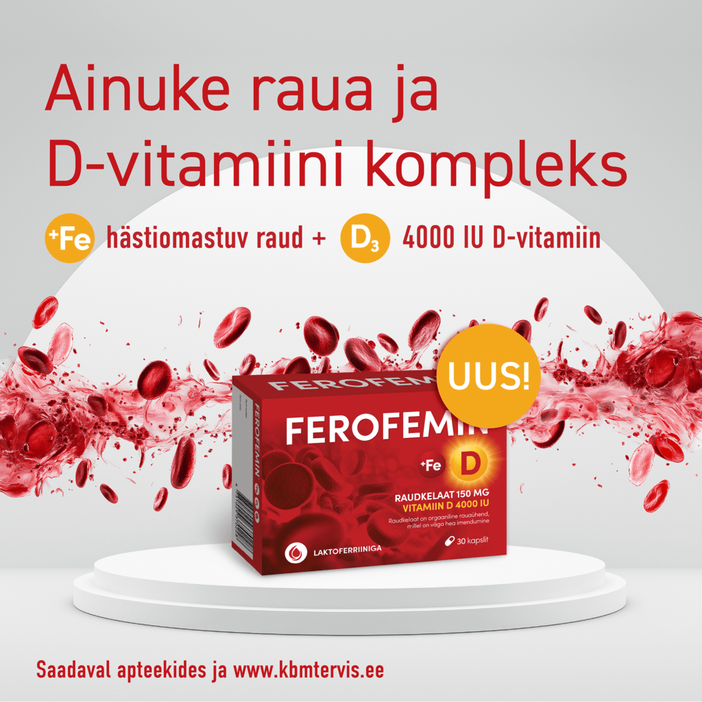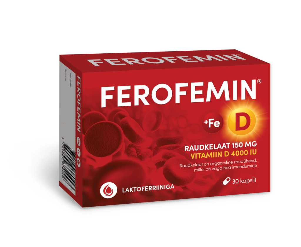 Eesti apteekidesse on jõudnud uus Ferofemin – ainuke komplekspreparaat, mis sisaldab hästiomastuvat raud-diglütsinaati, D-vitamiini (4000 IU) ja laktoferriini.
